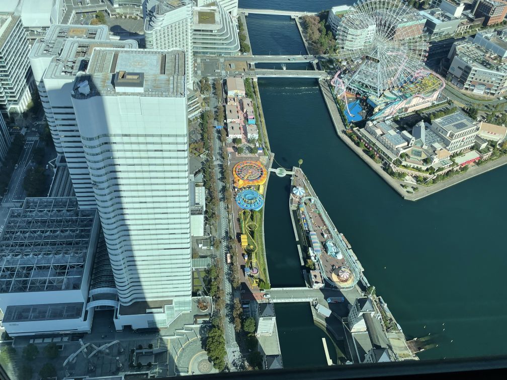 On the right is Yokohama Cosmo World which is a theme park with the tallest Ferris wheel in the World.