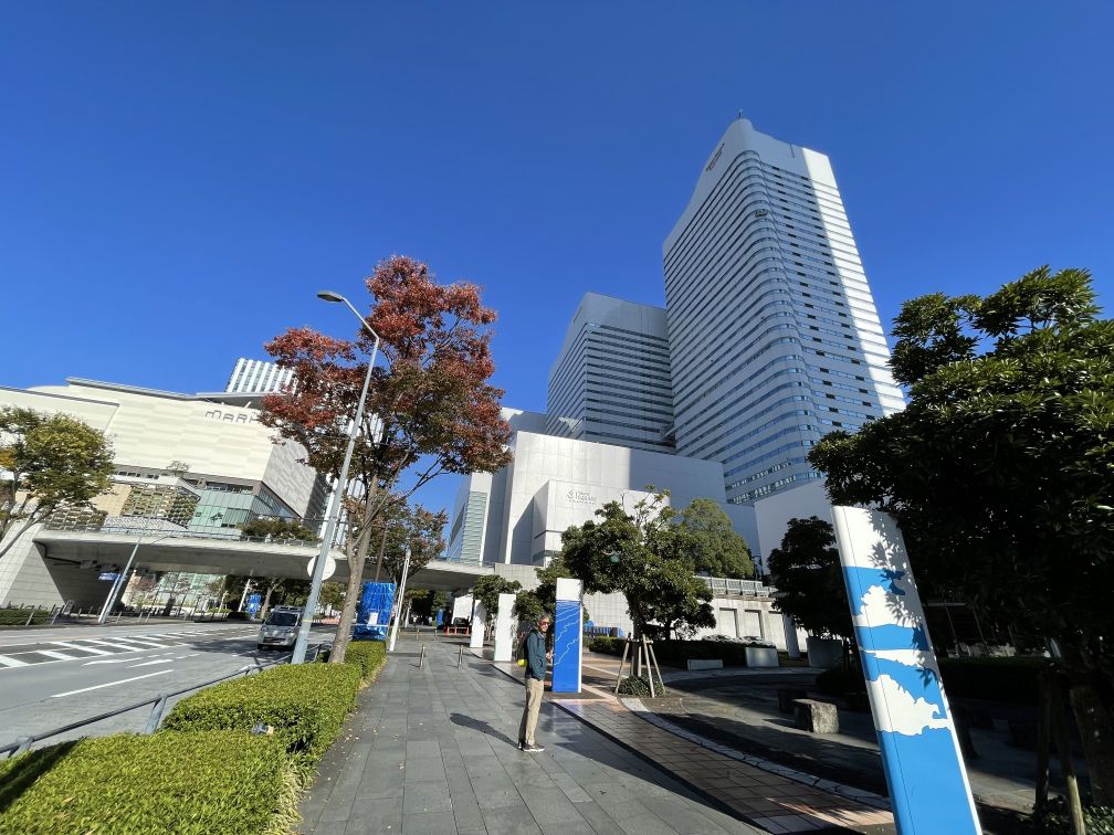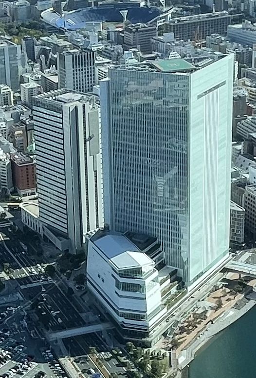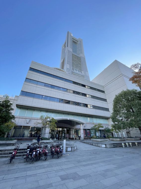 Oakwood suites building on the left, and on the right is the Yokohama city Hall building.