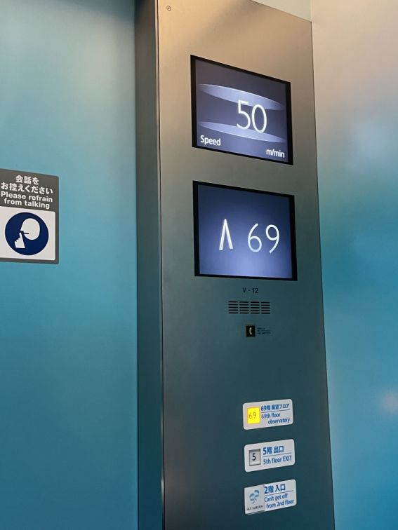 We are now on the 69th floor. The elevators are in the back.