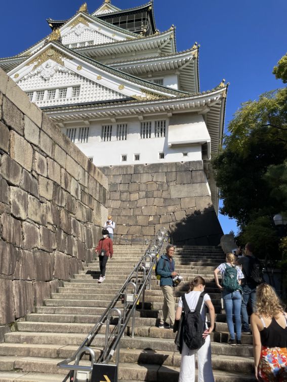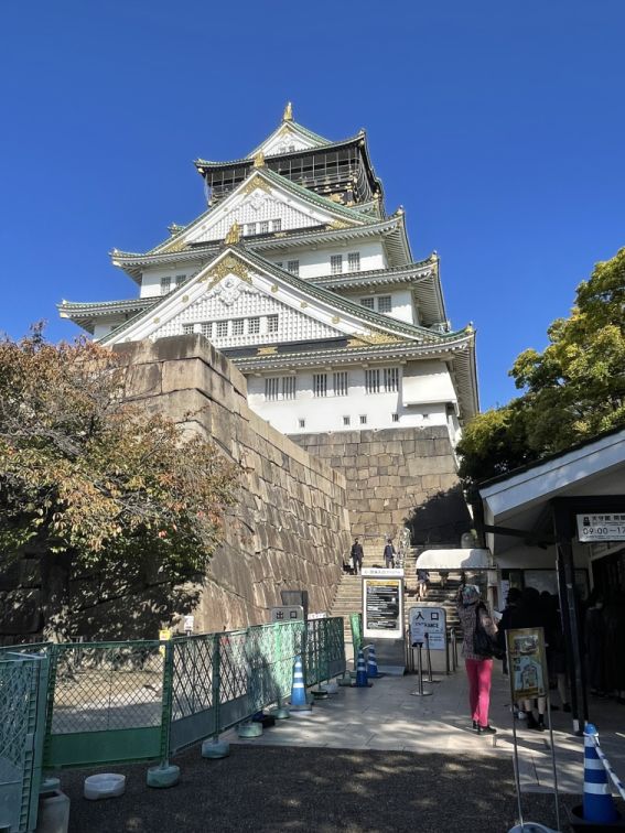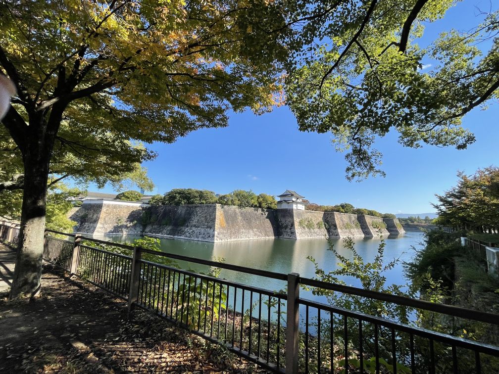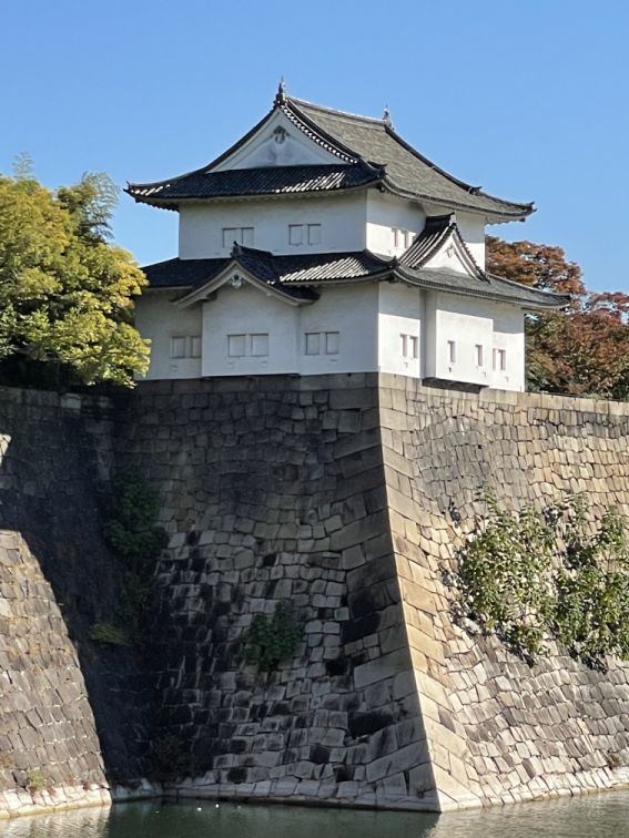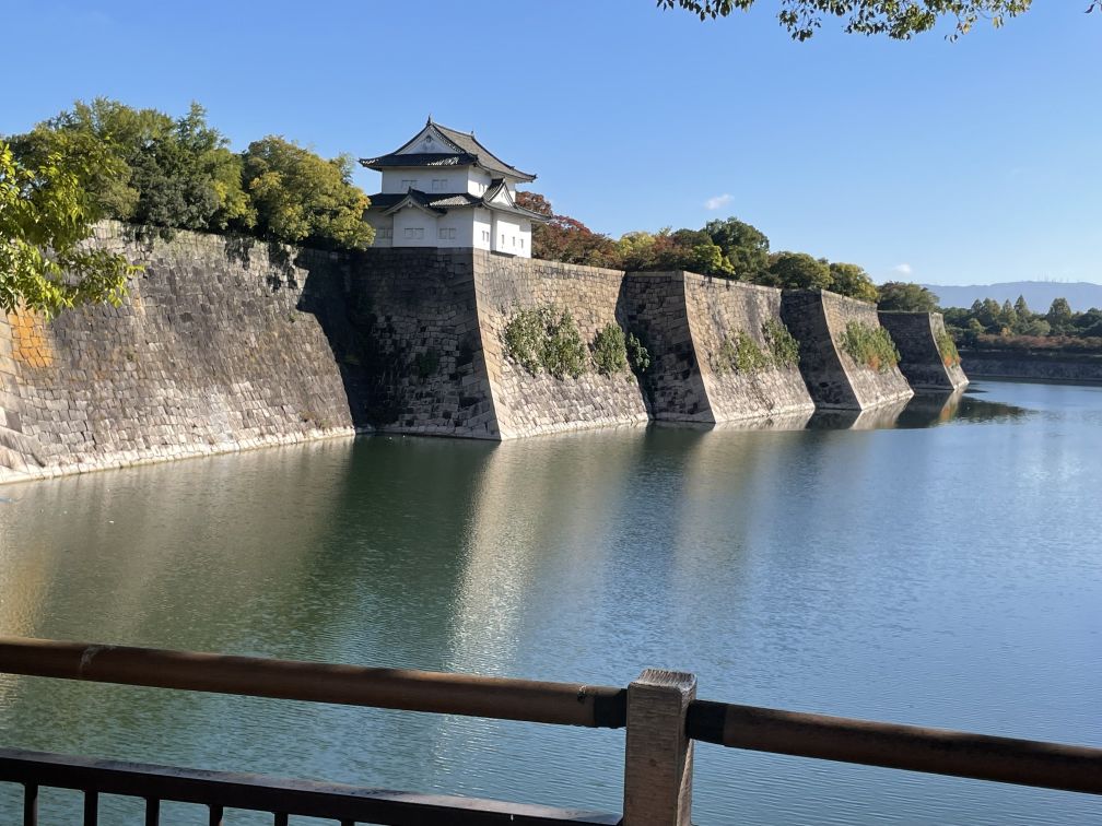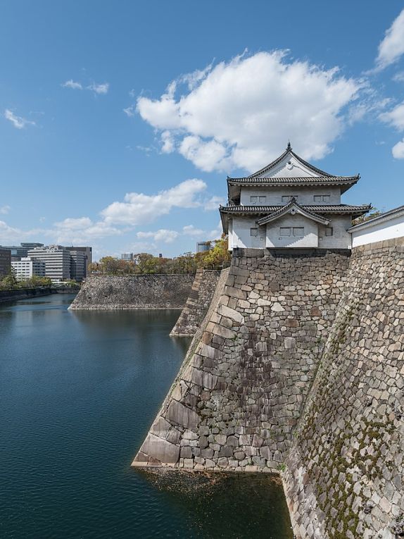 Osaka castle is surrounded by a series of moats and defensive fortifications.