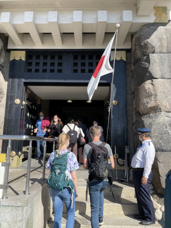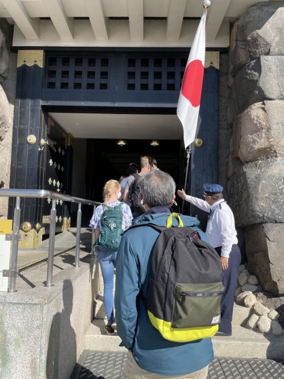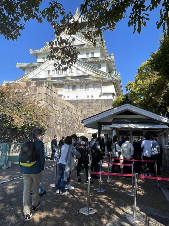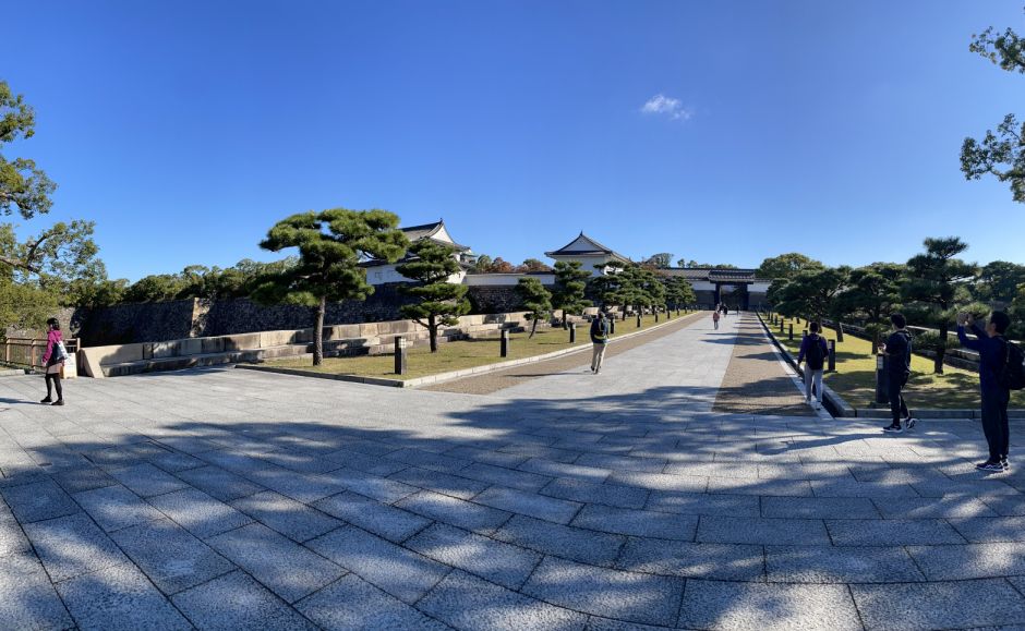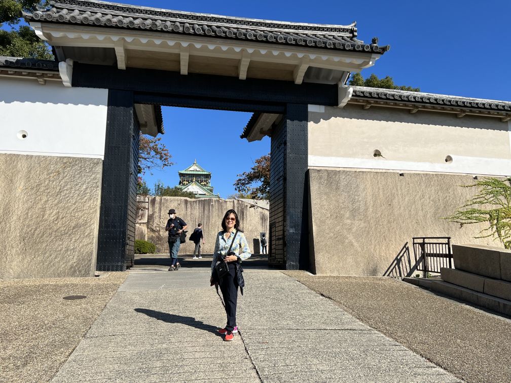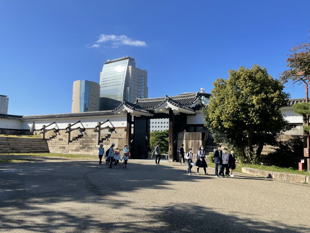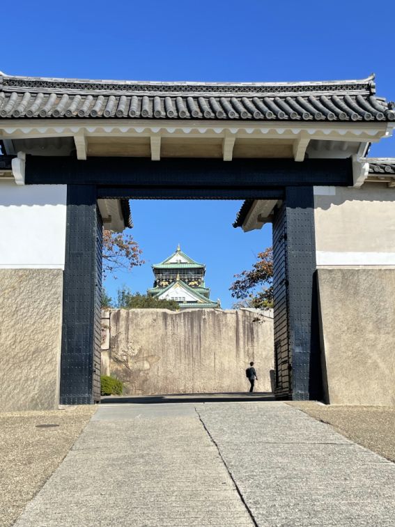 You can see the top of the Osaka castle in the background from the Sakuramon gate.