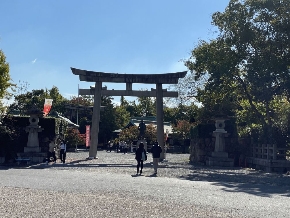 Hokoku shrine in Osaka Castle park. It is a small Shinto shrine that became popular place for Japanese couples to get married.
