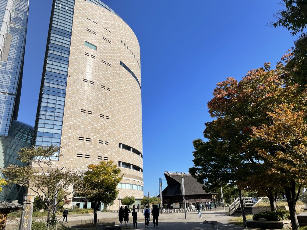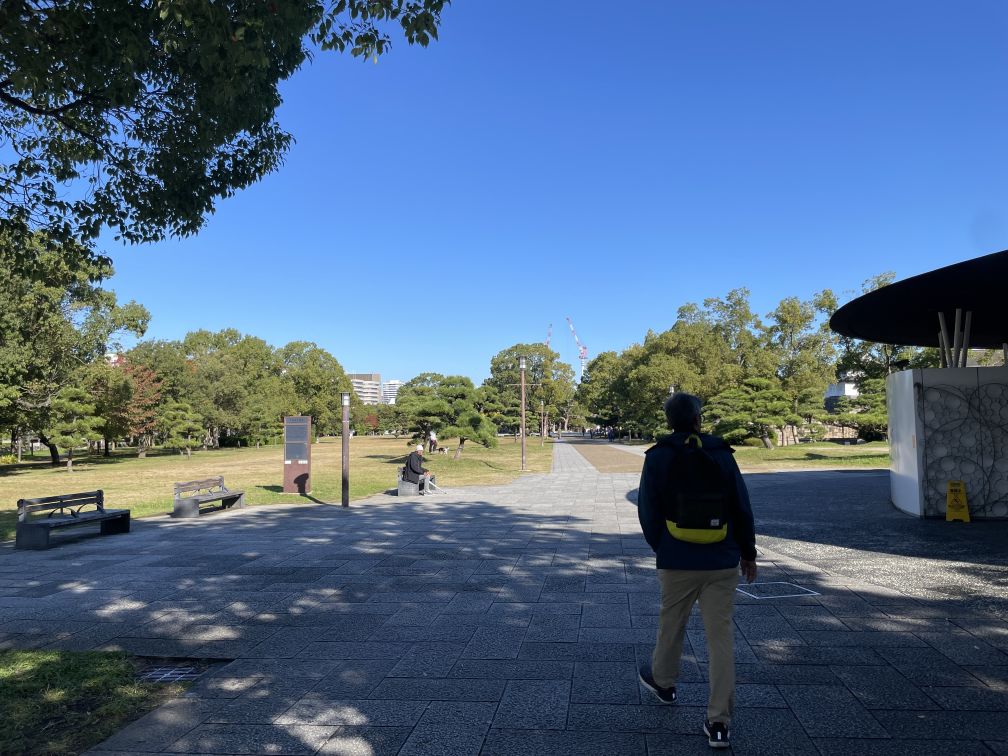 We are walking to the Osaka Castle Park. Osaka Museum of History on the left.