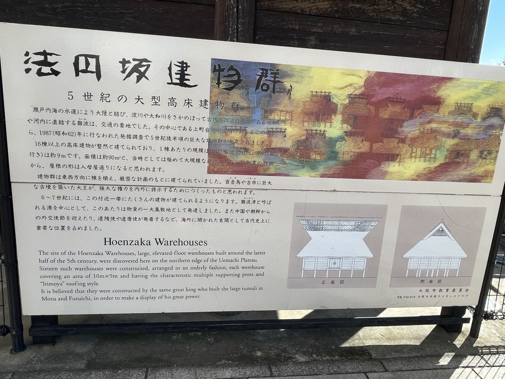 Hoenzaka warehouses are large, elevated-floor warehouse built around the later half of the 5th century, were discovered here on the northern edge of the Uemachi Plateau.