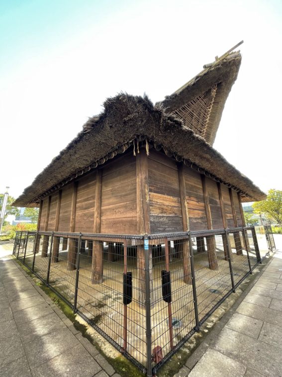 16 such warehouses were constructed, arranged in an orderly fashion, each warehouse covering and area of 10mx9m and having characteristic multiple supporting posts and "Irimoya" roofing style.