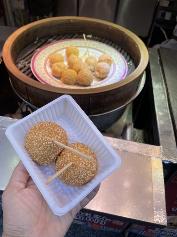 Hoa wanted a snack so we stopped by a stall selling sesame balls.