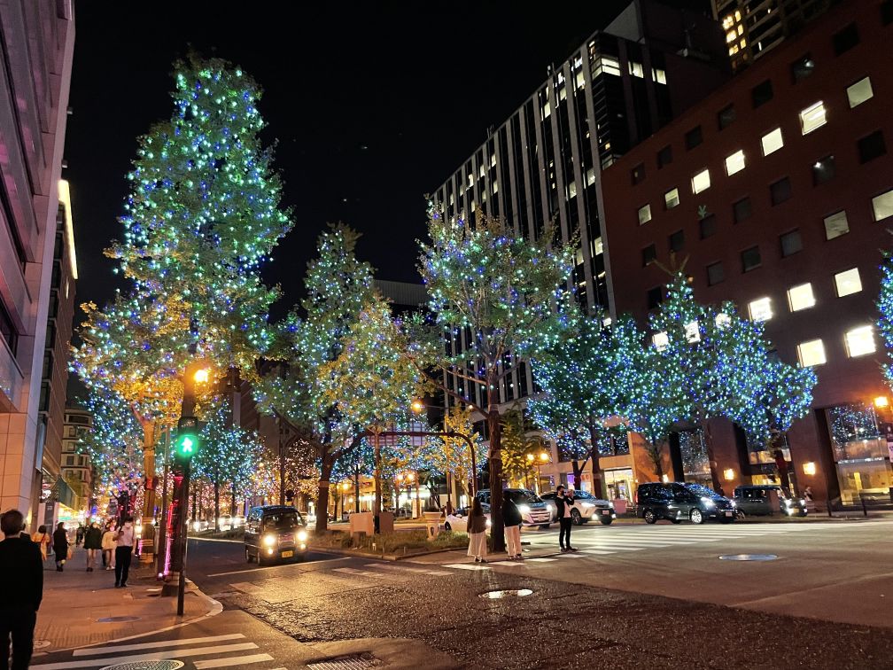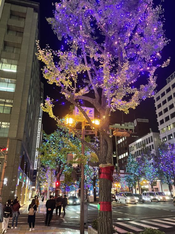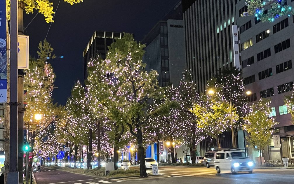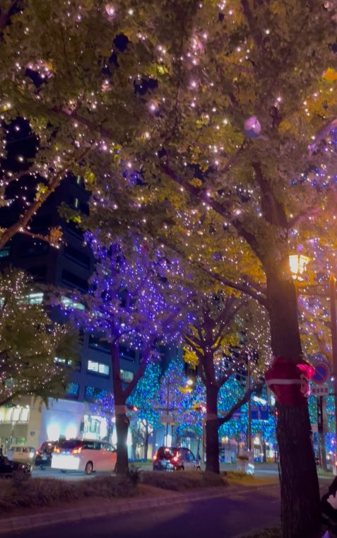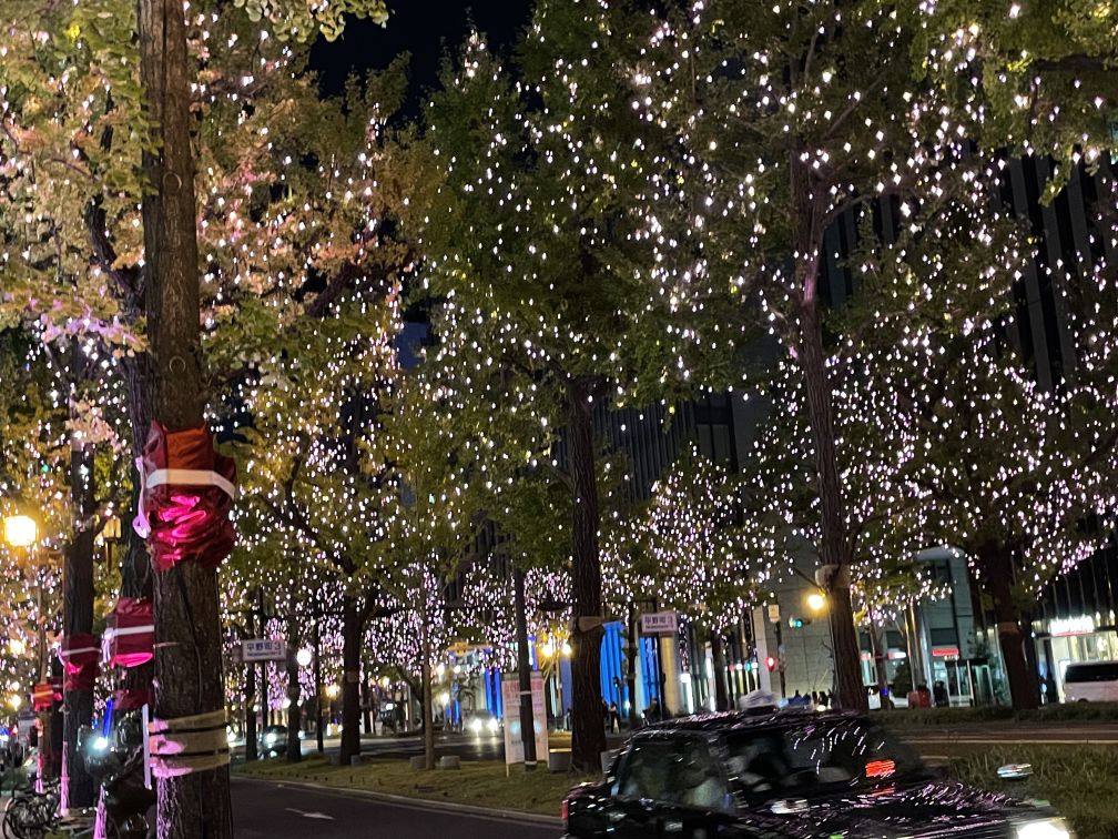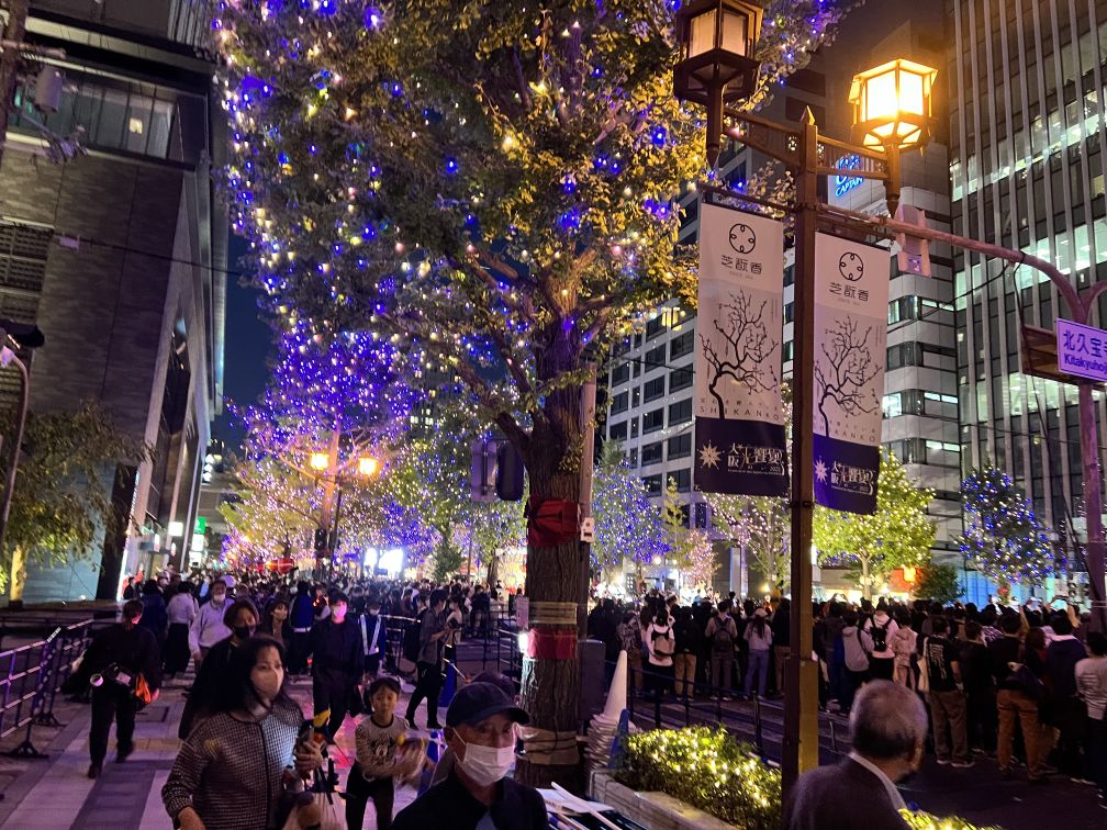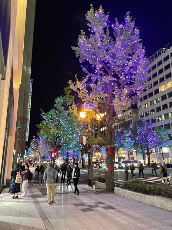Tonight is the first night that all the Christmas lights are turned on Midosuju Avenue.
