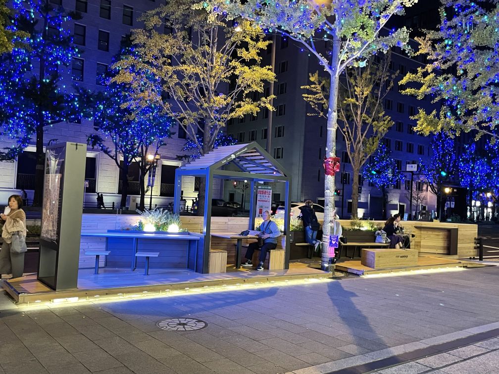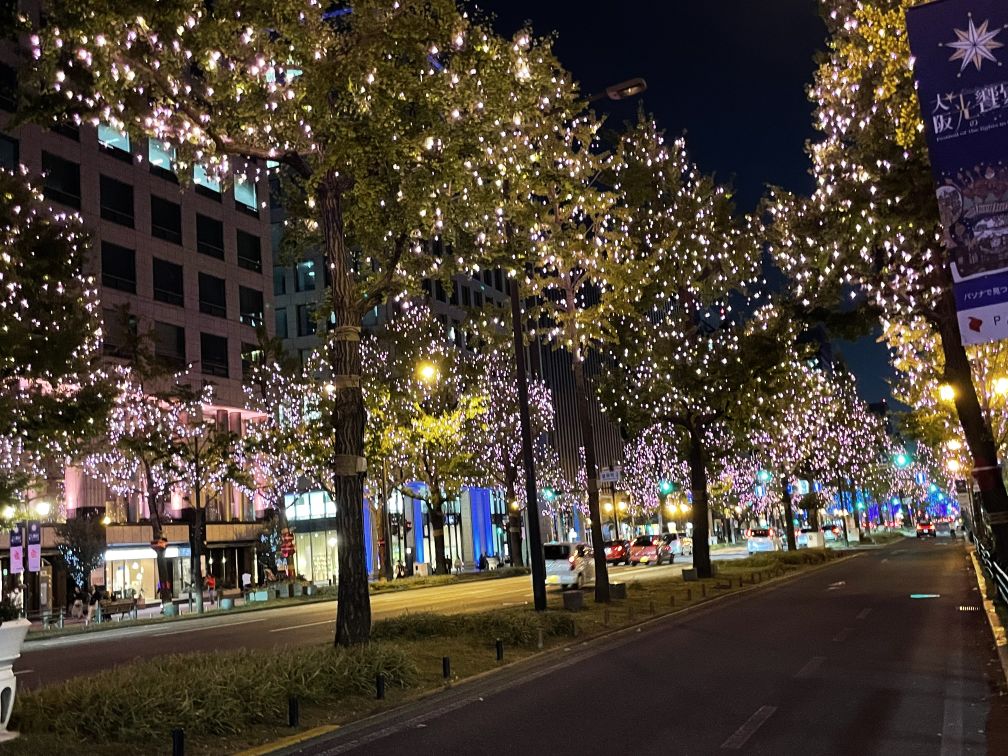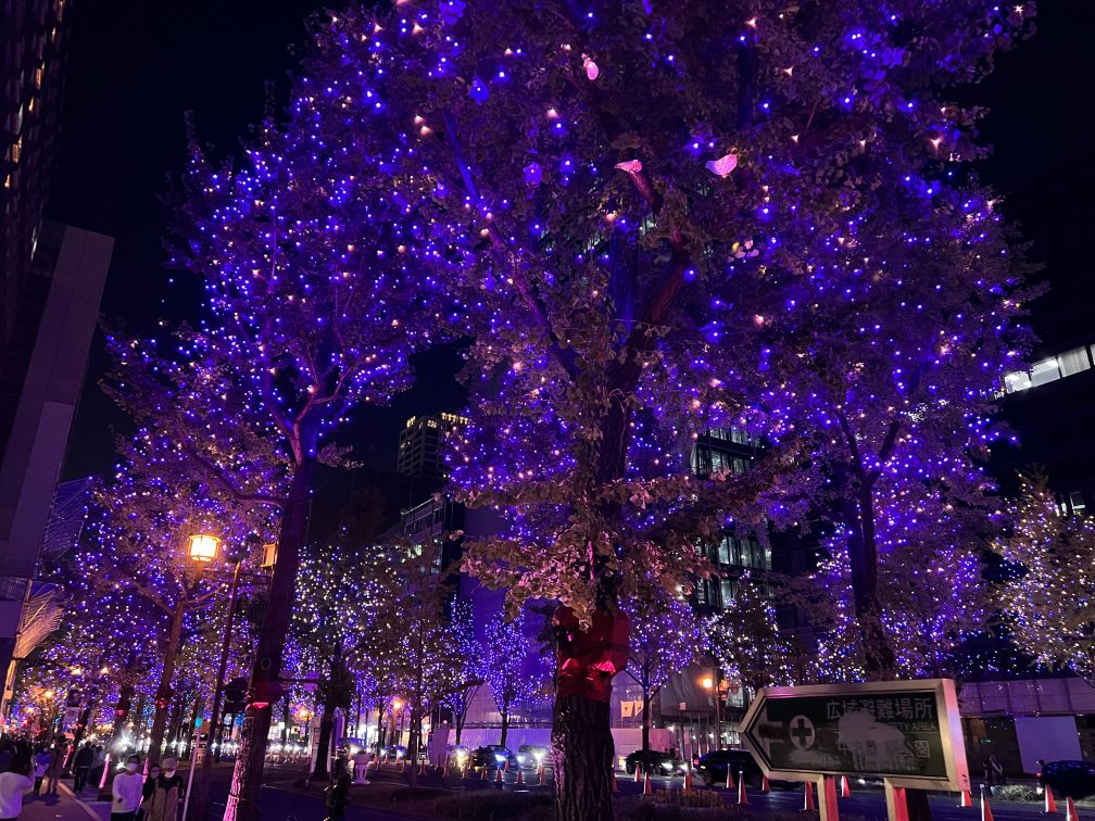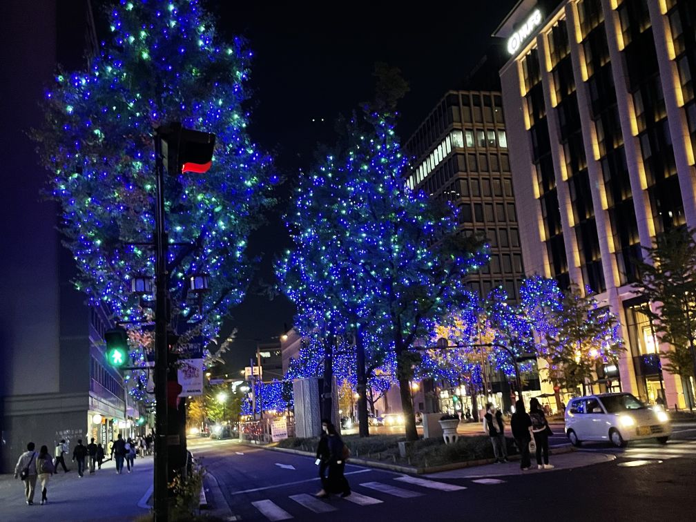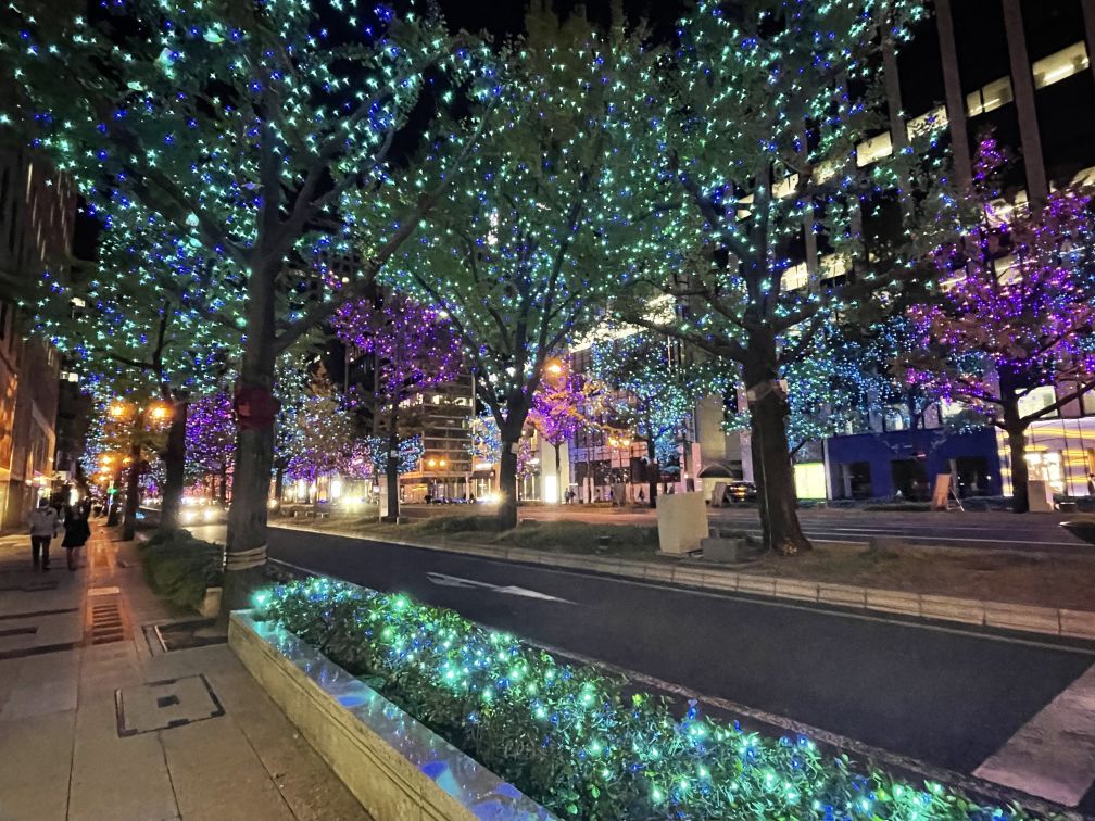Tonight is the first night that all the Christmas lights are turned on Midosuju Avenue.