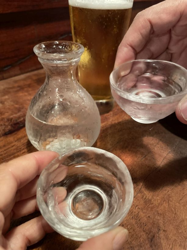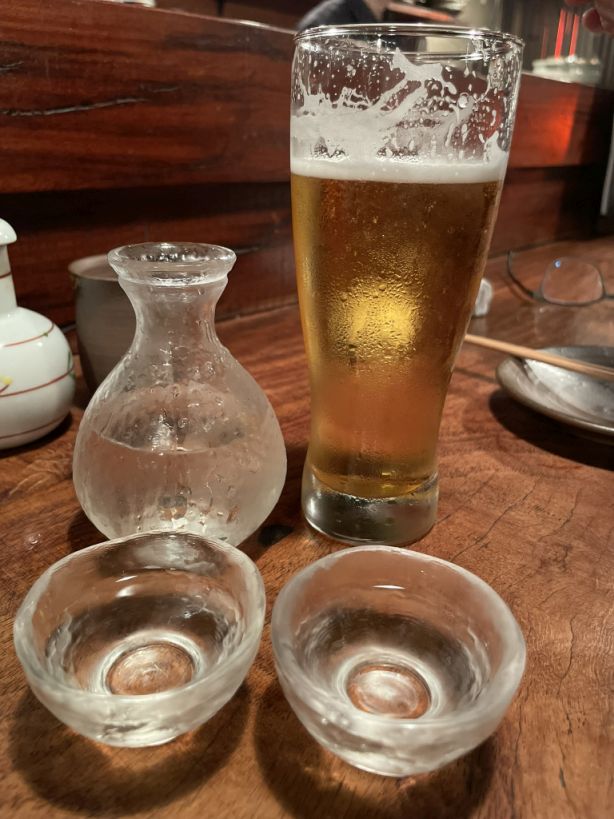 Sake and Beer. Cheers to a wonderful evening in Kyoto