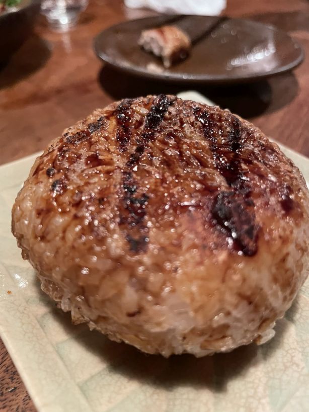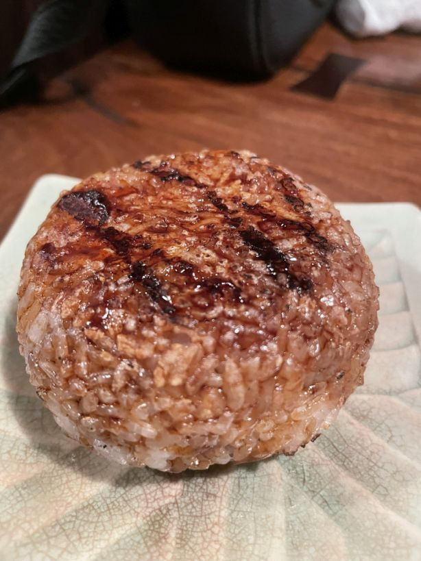 In Japan you always have to end a meal with some type of starch. This ball is grilled to perfection, crispy and so yummy.