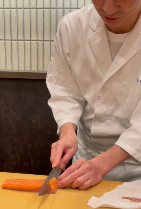 The chef preparing the sushi in front of us. He spoke very little English so it was difficult to have a conversation.