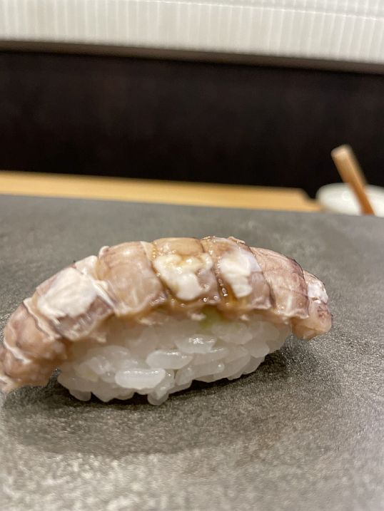 The 10th sushi is a small grey lobster that was sweet and firm, more structured than shrimp, with a refined shellfish flavor that lingered pleasantly.