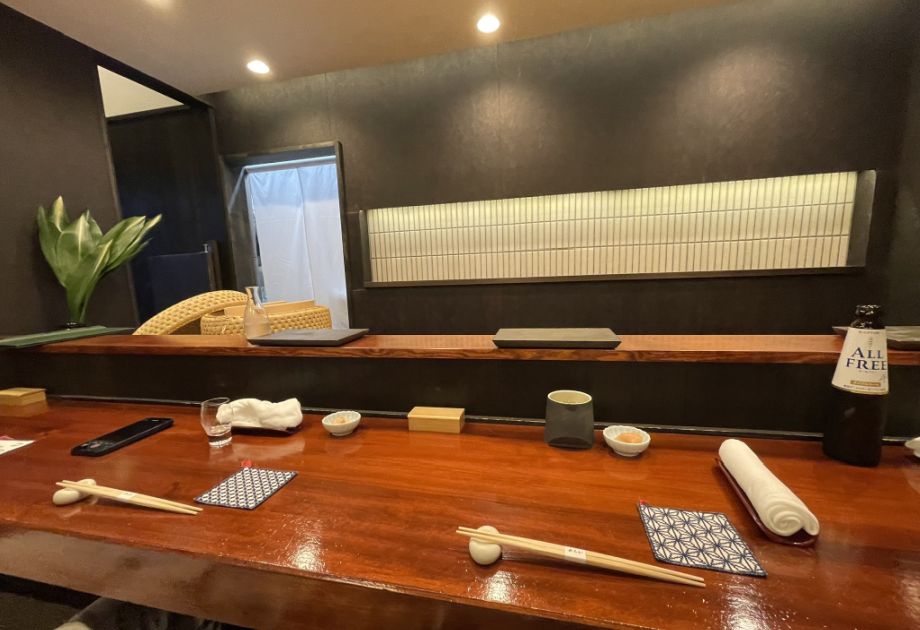 Inside, the atmosphere at Sushi Arai is intimate and traditional, with a small counter where diners can watch the chef at work, and just a few tables, making reservations strongly recommended.