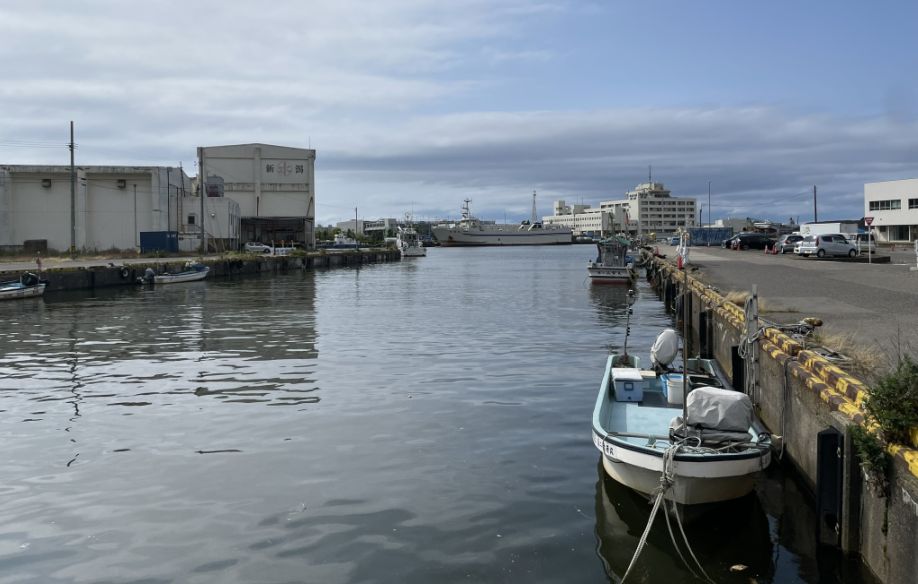 The fish market is located where the Shinano River widens and meets the sea, which makes it a natural hub for fishing and seafood commerce.