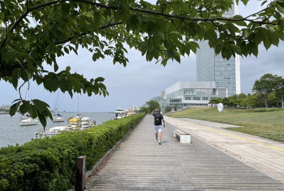 From there, we slowly walked back toward Hotel Nikko Niigata, following the riverfront path.