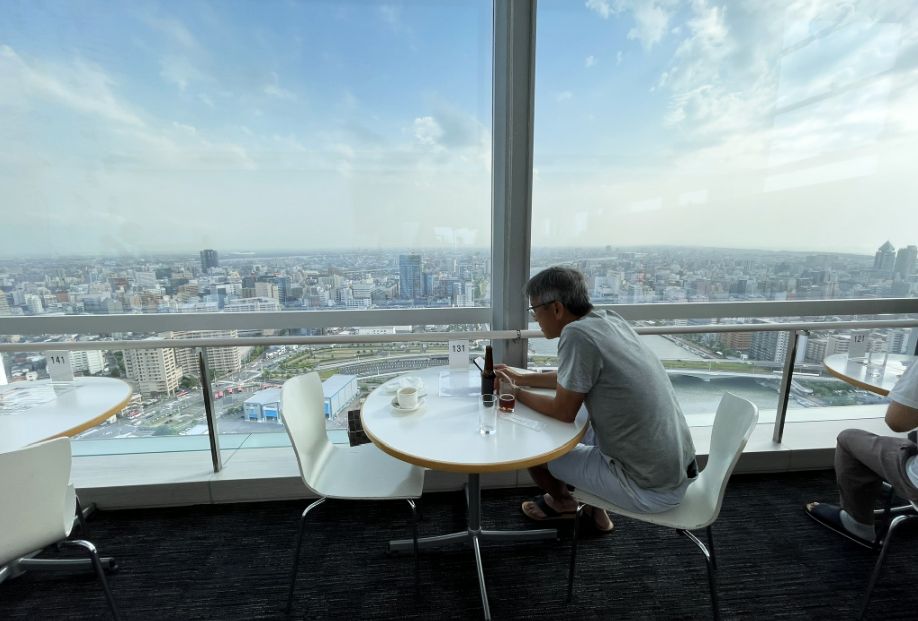 I had coffee and Hoa ordered a beer, and we just enjoyed a quiet moment high above.