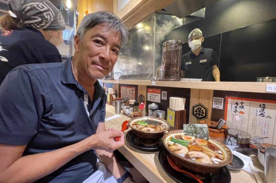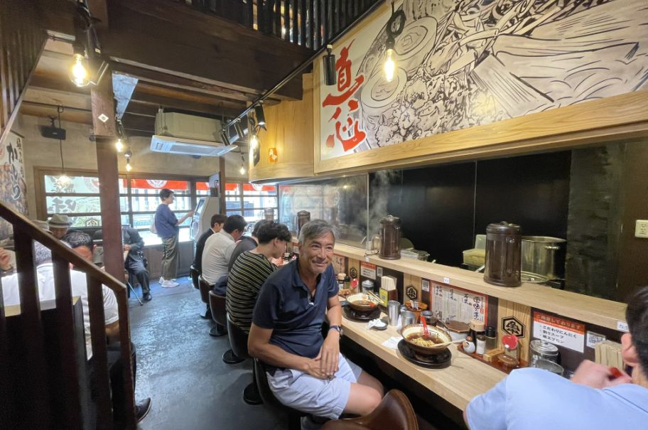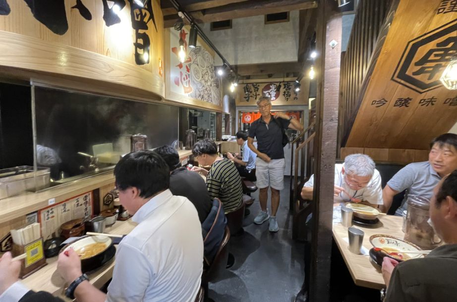 From our stools, we could watch the entire rhythm of the place unfold. Steam rose from huge pots of broth, noodles were lifted and shaken in metal baskets, and bowls were assembled with quick, practiced movements. There was no wasted motion, just quiet focus and the steady clatter of cooking.