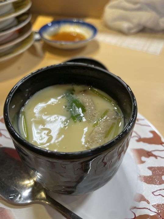 Ending the meal with a small bowl of chawanmushi, the classic Japanese savory egg custard, silky smooth and gently steamed, warm and comforting with hidden bits of seafood inside. And then a bowl of miso soup, simple and soothing.