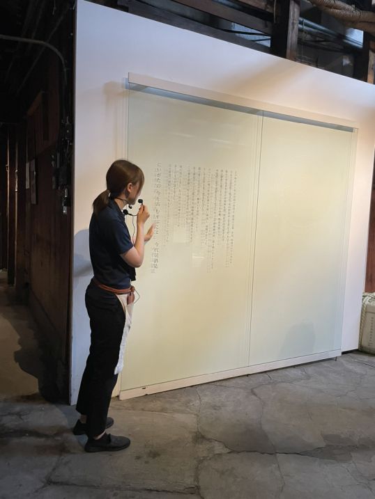 Unfortunately, the tour itself was conducted entirely in Japanese, so we couldn’t understand most of what was being explained. Still, just being there was fascinating. The cool air, the smell of rice and fermentation, and the sight of these massive tools gave us a real sense of the craft and patience behind every bottle.
