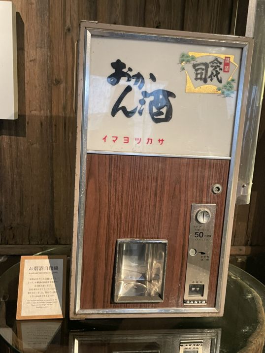 A Kanzaze Vending Machine had been very popular in the 1960's to enjoy Kanzake (warm sake). These were standing at bars, and love by workers.