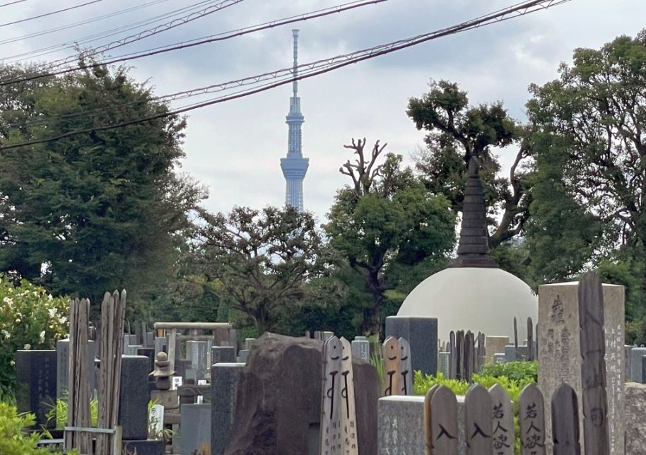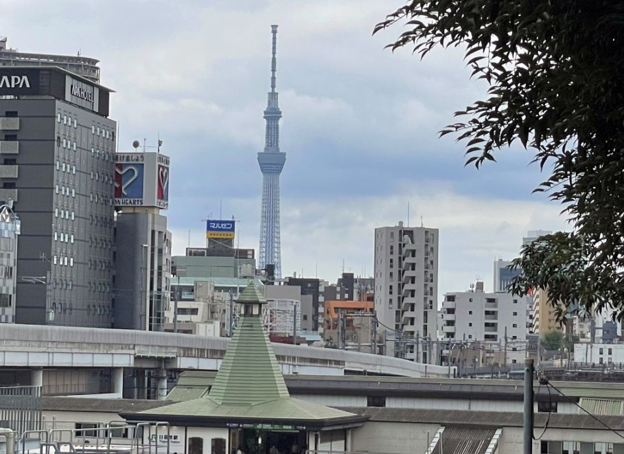 We walked through Nishi-Nippori neighborhood and we saw the Tokyo Skytree standing tall in the distance. It is Japan's tallest structure and serves as a television and radio broadcast tower for the Kanto region. Because this neighborhood sits on a high bluff, it provides an excellent, unobstructed line of sight across the lower "Shitamachi" districts toward Sumida, where the Skytree is located.