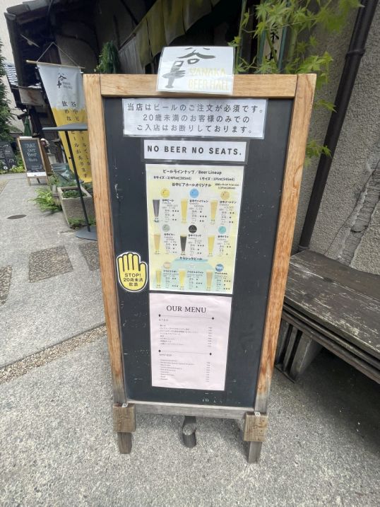 We stopped for lunch at Yanaka Beer Hall, a relaxed little spot tucked along the old streets of the neighborhood. Out front, several blackboards covered in handwritten Japanese menus leaned against the wall, listing the day’s beers and simple dishes in chalk. A few people were already sitting outside, chatting softly with glasses in hand, giving the place the feel of a friendly local hangout rather than a tourist stop.