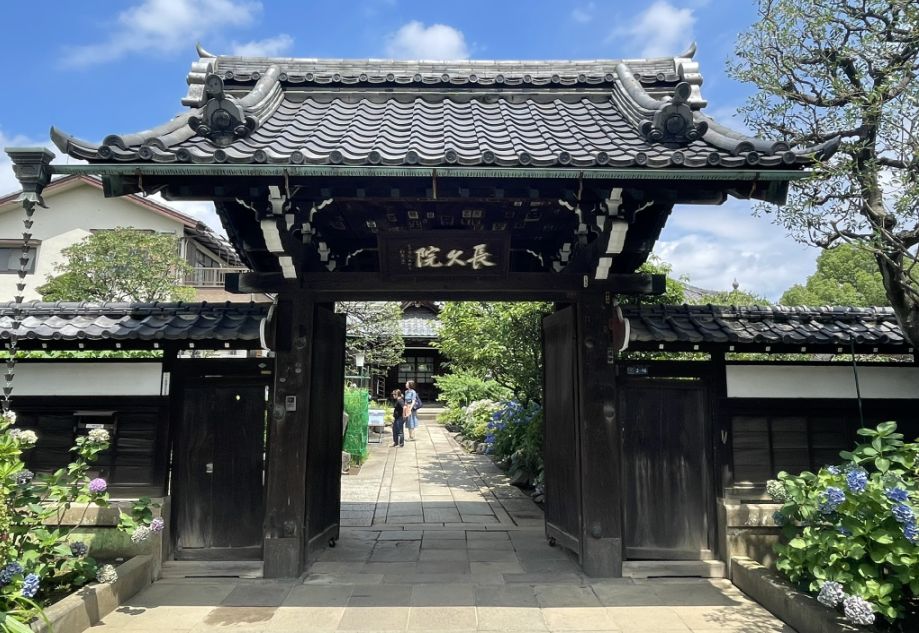 Like many temples in this area, it is tucked tightly between modern residential buildings and local businesses, showing how integrated these spiritual spaces are with everyday life in the Yanaka district.