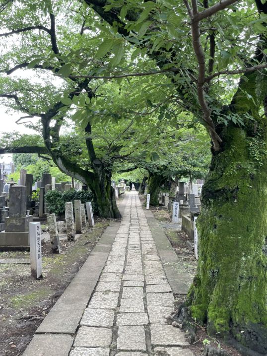 Walking through Yanaka Cemetery doesn’t feel dark or heavy. Instead, it feels peaceful and spacious, like a park where memory lives quietly among trees and stone.