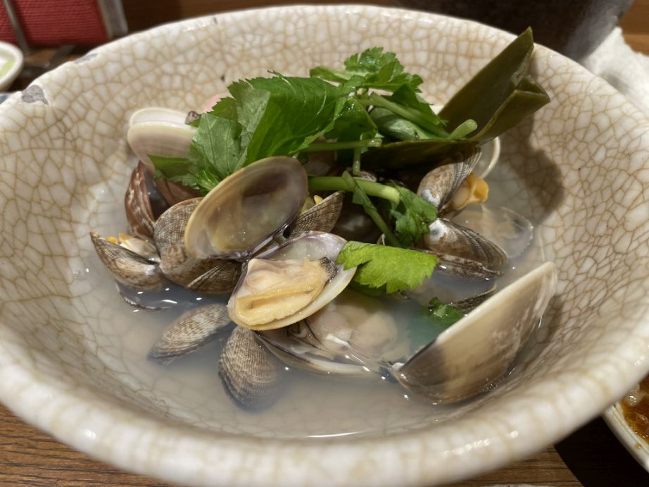 The steamed clams followed, fragrant and sweet, floating in their clear, savory broth, tasting purely of the sea.