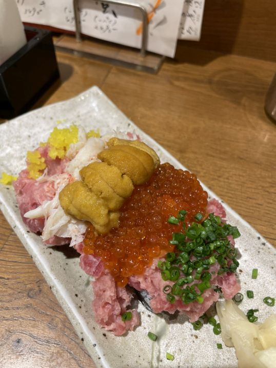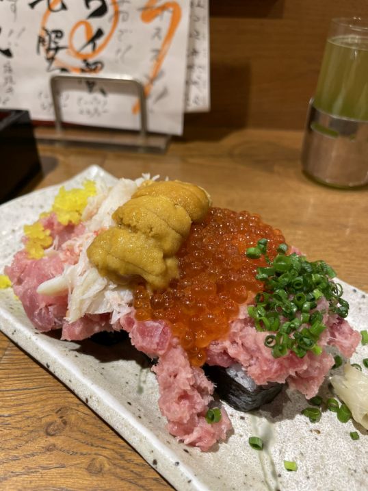 First came their famous cucumber roll, but this was no ordinary roll. A cool, crisp cylinder of cucumber replaced the rice, topped generously with salmon roe, finely chopped tuna, sweet crab meat, and a crown of creamy sea urchin.