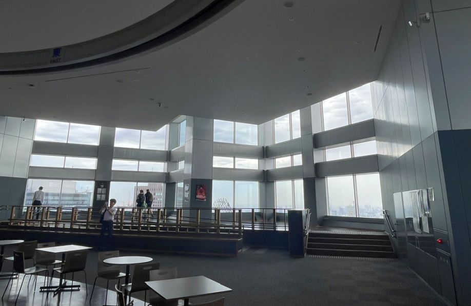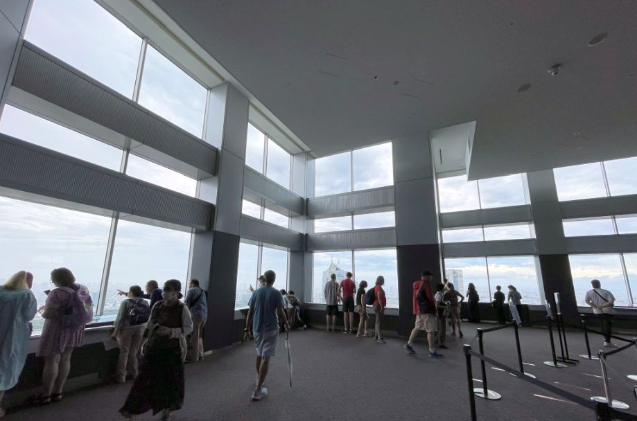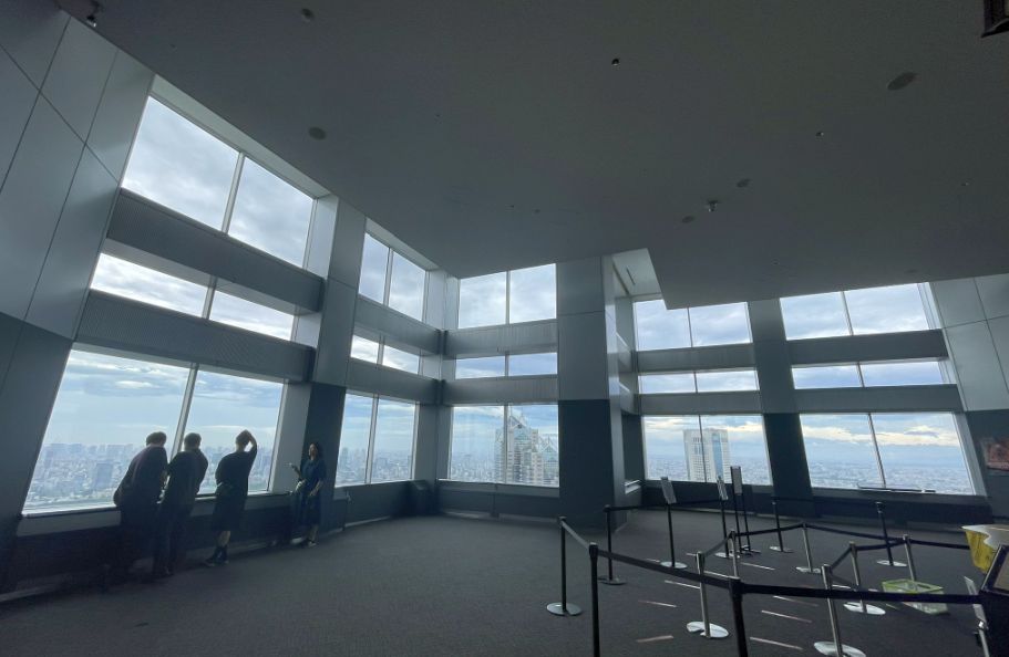 From the center of the observation deck, the view through the windows was especially stunning. The glass rose high above us, tall and seamless, framing Tokyo like a living mural. Modern towers stood shoulder to shoulder in every direction, their clean lines and silver surfaces catching the light, stretching endlessly toward the horizon.