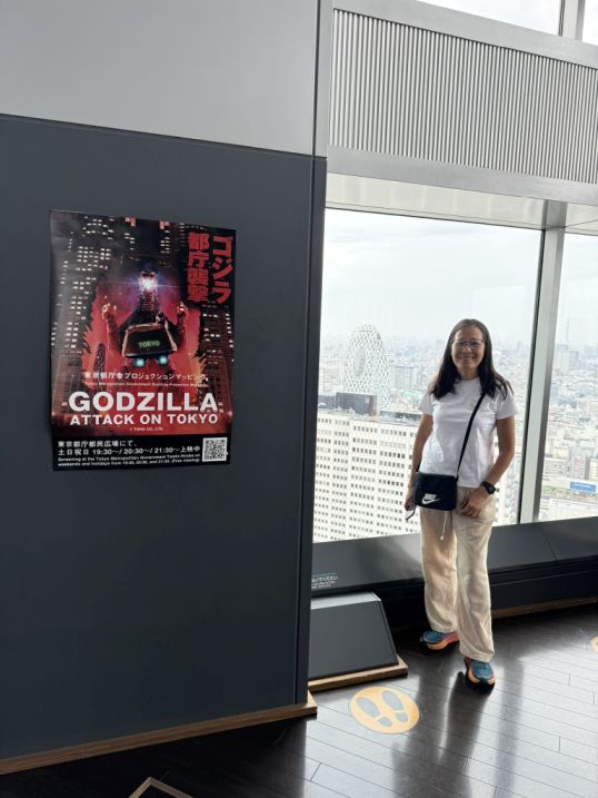 Near one corner, we noticed a sign about Godzilla’s attacks on Tokyo, a playful reference to the many films where the giant monster famously battles through the city, sometimes even destroying this very building. It was a small, humorous touch that reminded us how deeply Tokyo lives not only in reality, but also in imagination and cinema.