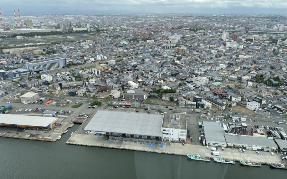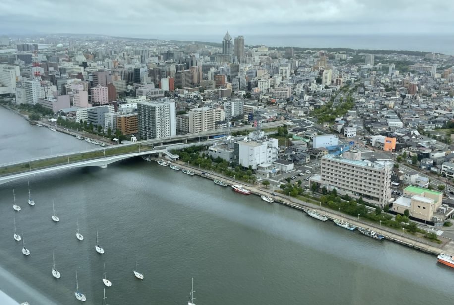 That stretch where river and sea come together is one of the most dynamic parts of Niigata. From above, the effect is peaceful.