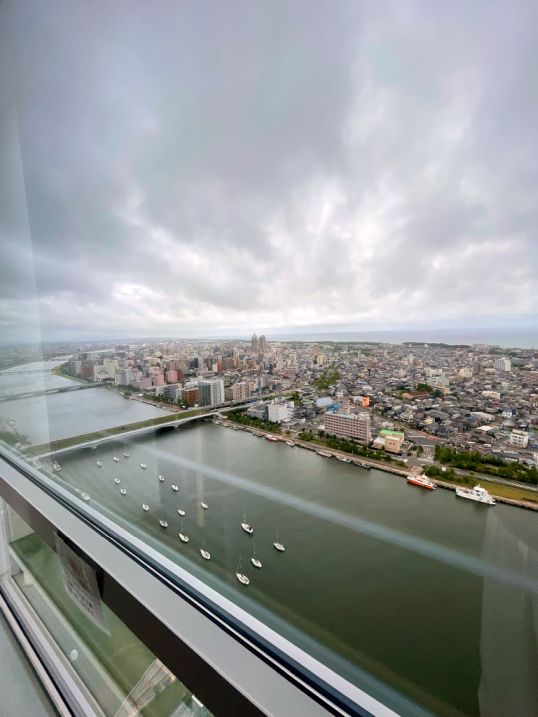 From your view up on the 25th floor of Hotel Nikko Niigata, we were looking out over one of Japan’s most important waterways, the Shinano River, which is actually the longest river in Japan before it empties into the Sea of Japan right by Niigata City.