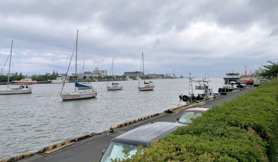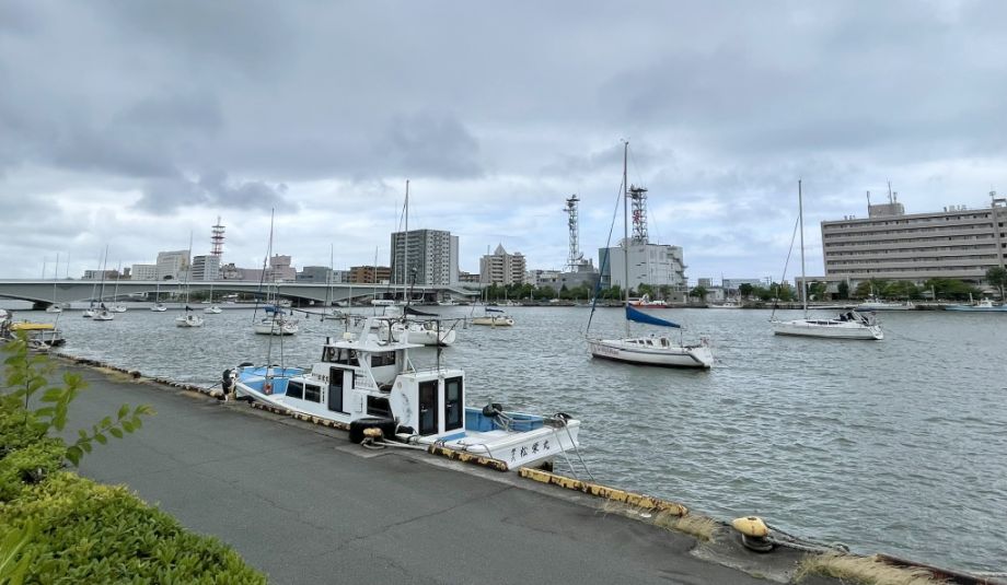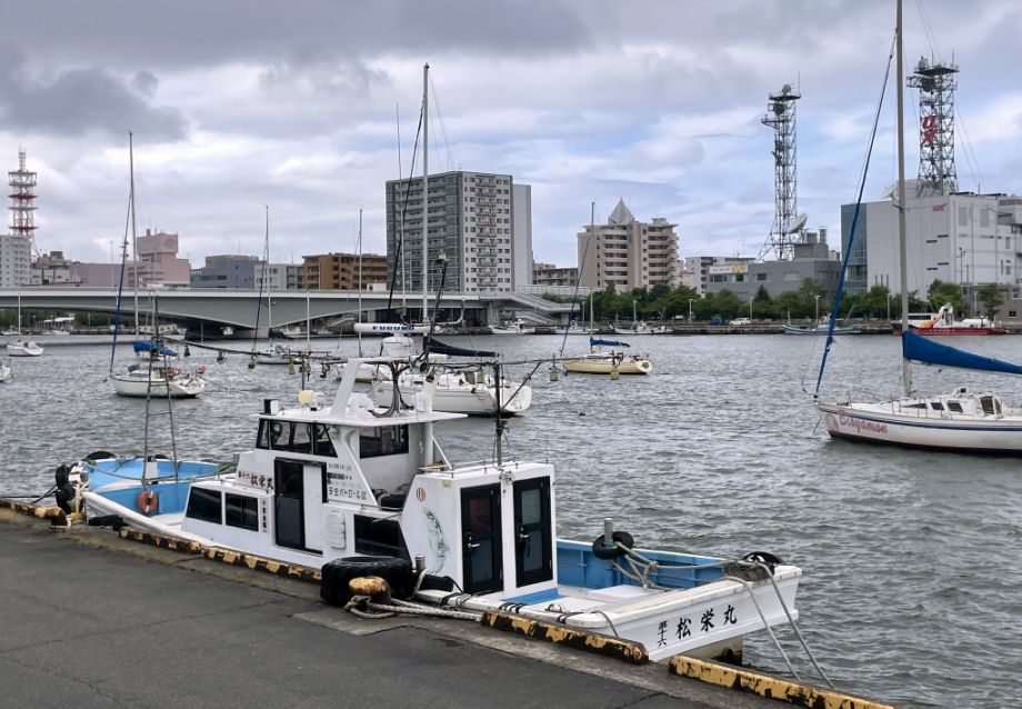 Lots of smaller boats and even larger colorful vessels, since this area near Niigata’s waterfront is active with maritime traffic from leisure craft to fishing boats and working ships.