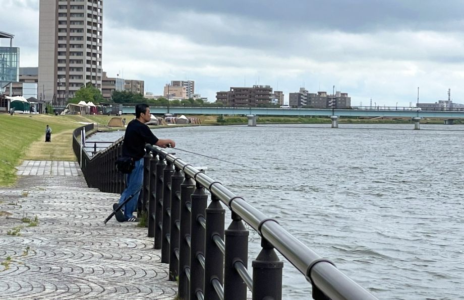 Along this stretch of the Shinano River, the riverbank feels more like a working waterside neighborhood than a tourist spot.