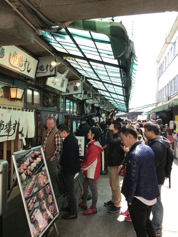 Tsukiji market is divided into 2 section: the inner and outer market. The outer market is much smaller, has plenty of great sushi restaurants, and lots of shops selling vegetables, spices, cooking implements and various other things.