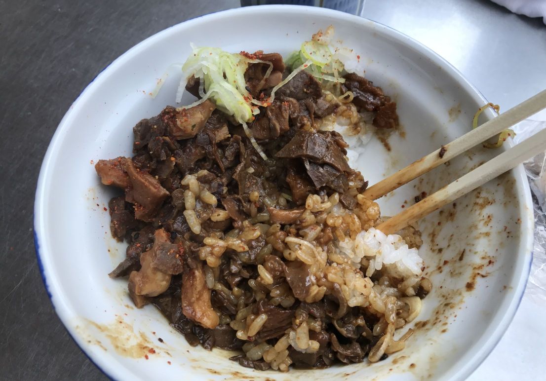 Beef, tendon, and innards stew...look like it is a popular place to eat...
