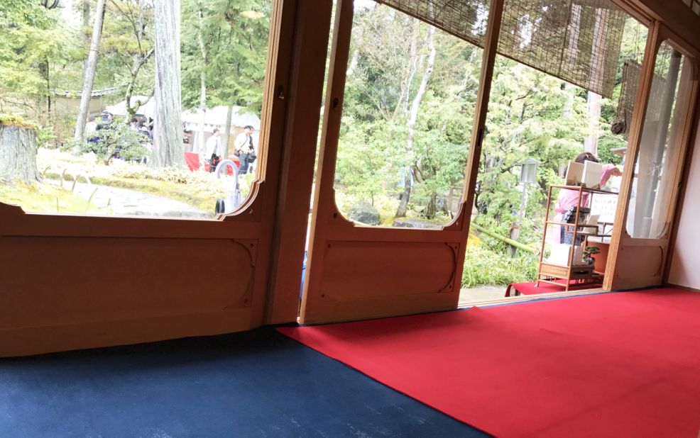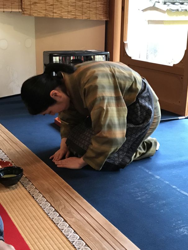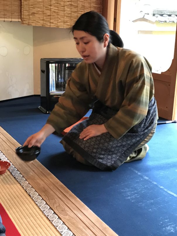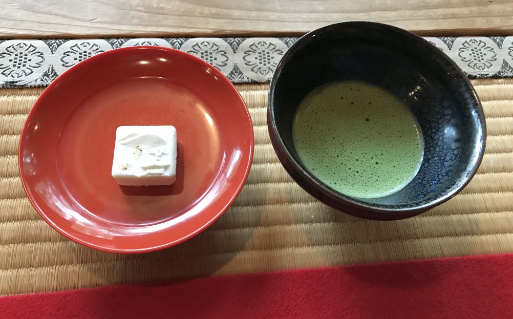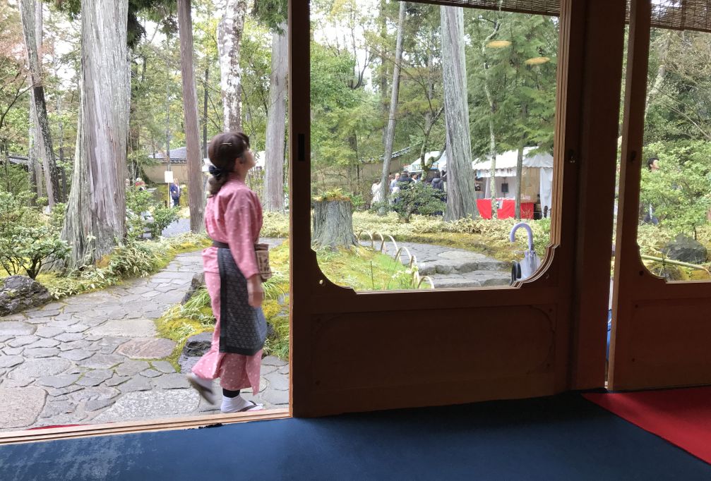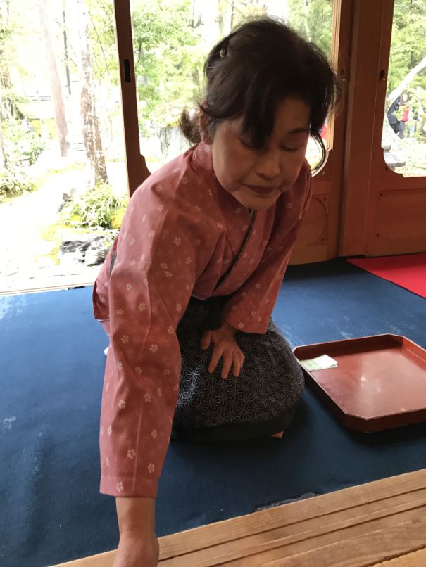 Tea houseWe are now outside the exit and there are souvenir shops, a small tea garden where you can have matcha tea and sweets (500 yen). Thierry wanted to give it a try so here we are having traditional Japanese tea.
