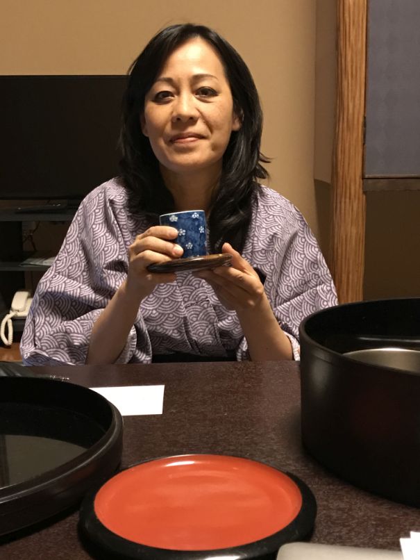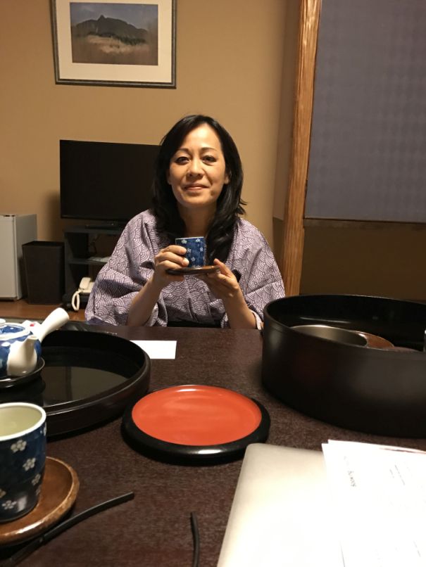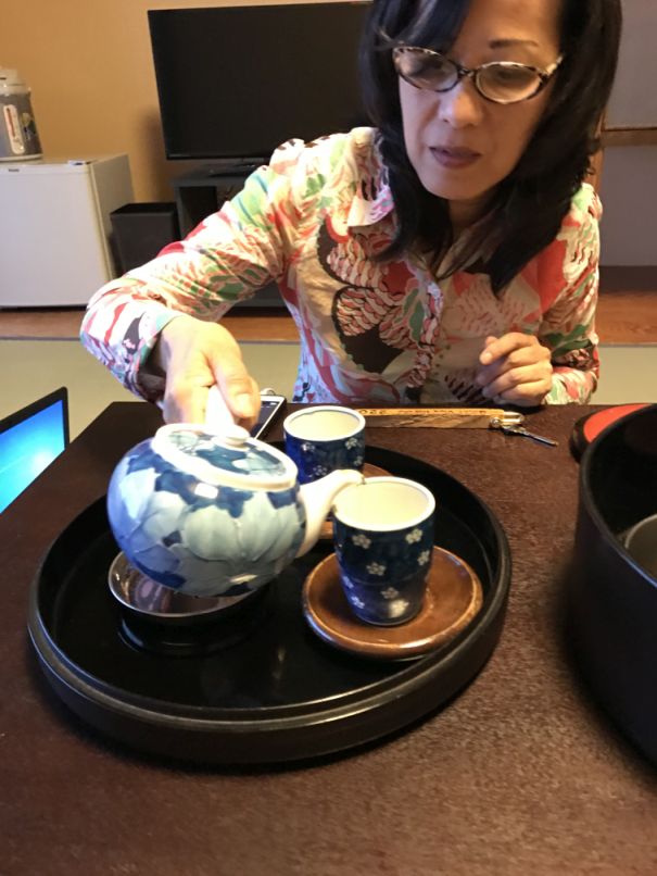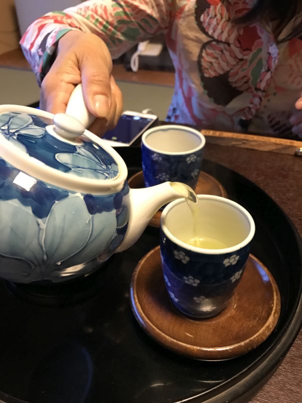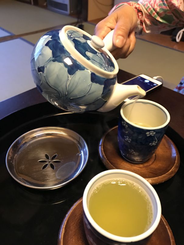 We were invited to sit down (heated blanket underneath the coffee table) to drink tea.