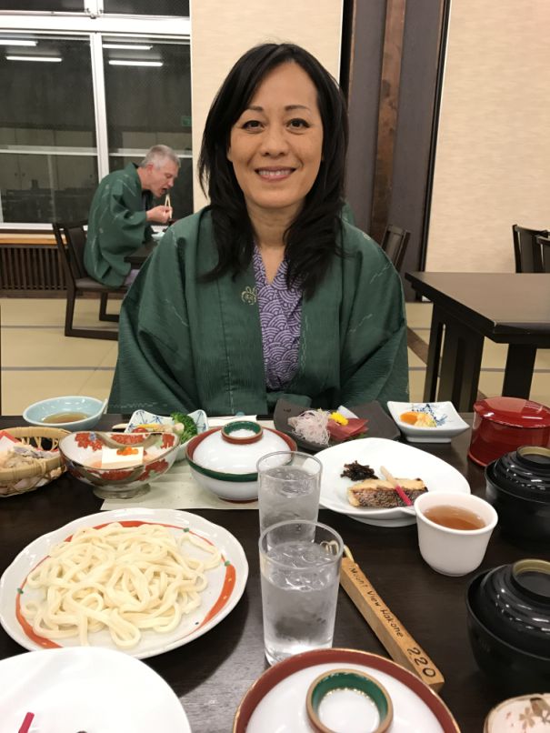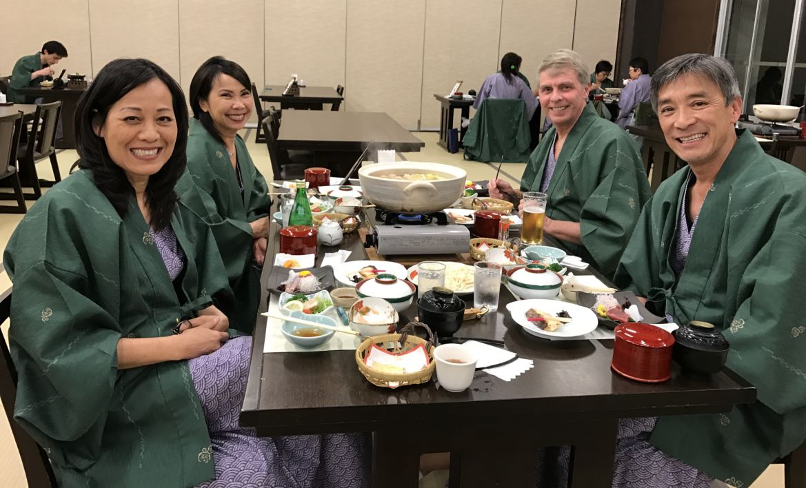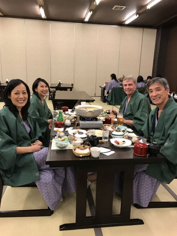 We were also asked to wear a Yukata for dinner. Yukata (literally "bathing clothes") are a traditional garment, similar in style to kimono, but lighter, much more casual, and made of cotton.