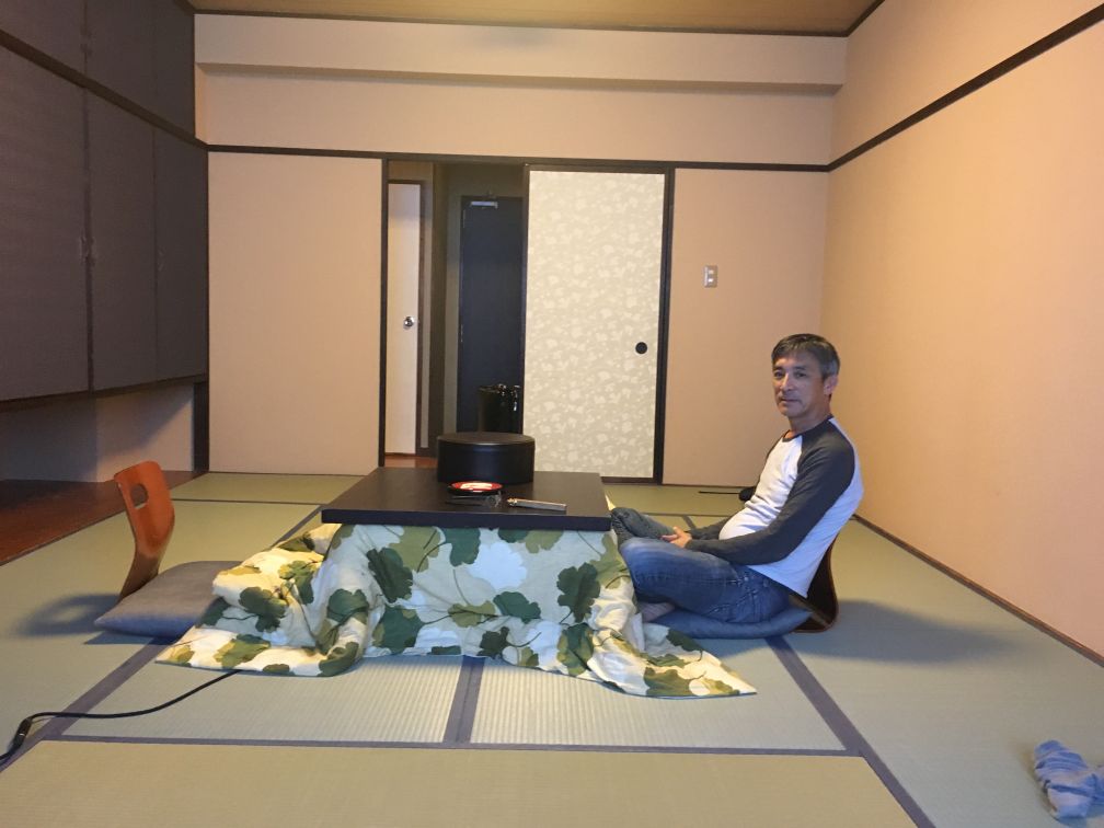 Our room is pretty large with tatami flooring and a low table at the center of the room. There is a wash room with a sink and a toilet room separated from the main room by sliding doors. There are no bathroom, bath are taken in community.