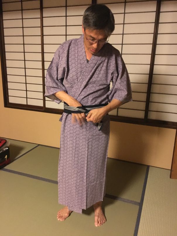 Yukata function both as a bathrobe and loungewear, which can be worn at all times, including to dinner and breakfast, walking around the hotel, and to bed as sleepwear.