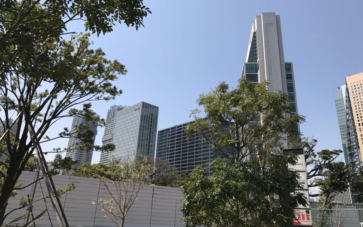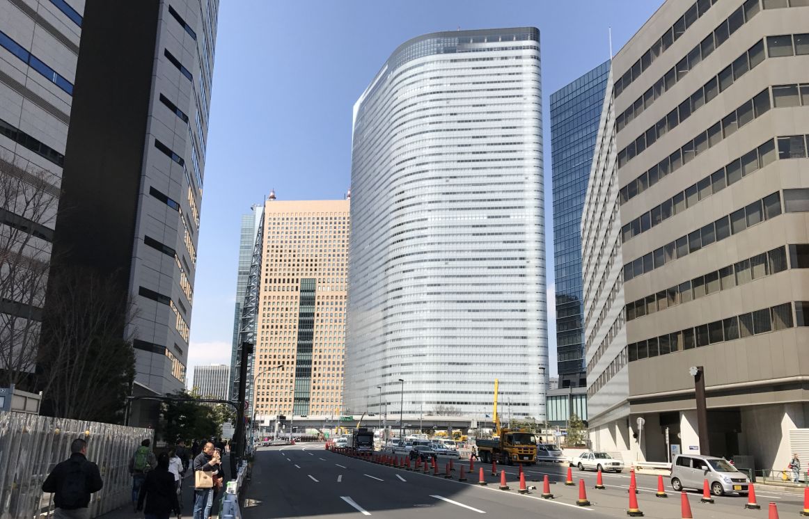 It is located in the area called Shiodome and is situated right the middle of tall skyscrapers in the business and commercial buildings that were built during the redevelopment of the area in 2004.