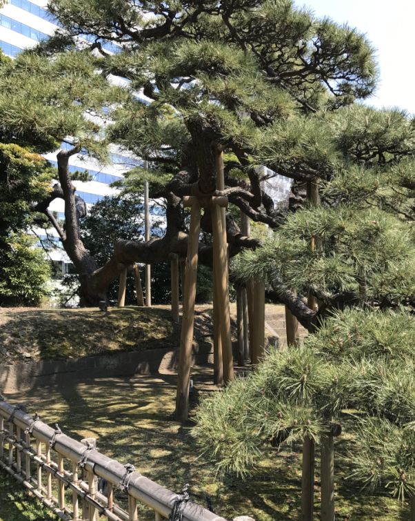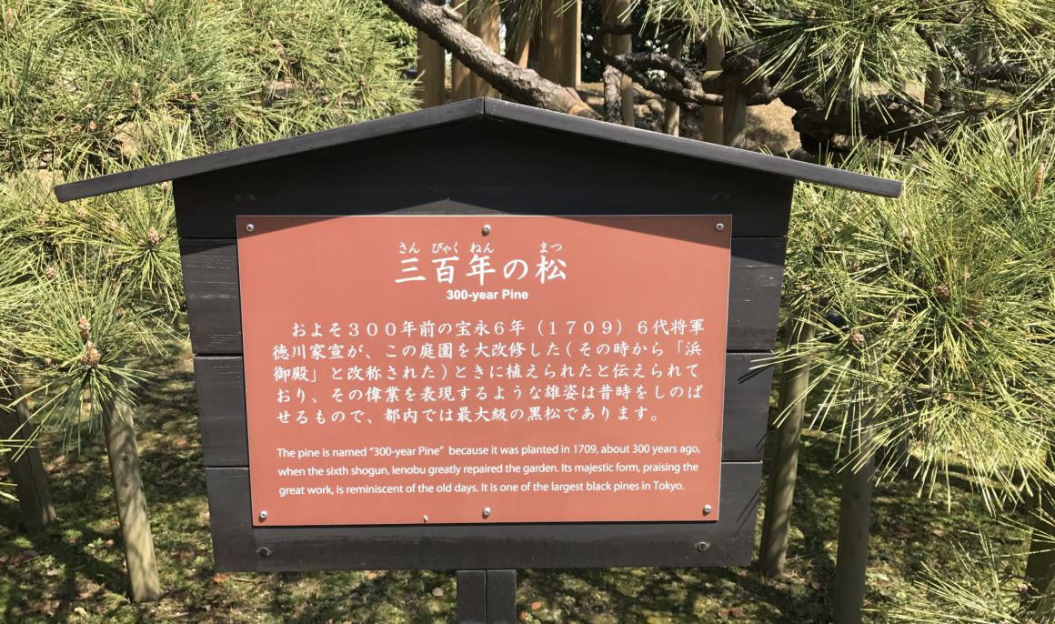 It was built by the shogun Tokugawa in the Edo period (1603-1868). The garden's ponds are connected to the Tokyo bay so the water level of the ponds changed with the tide. Large parts of the garden were reed fields, and the southern garden was used by the Shogun's family for falconry and duck hunting.