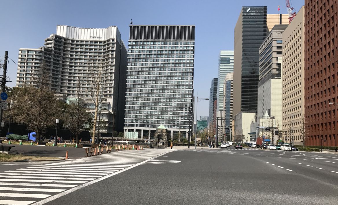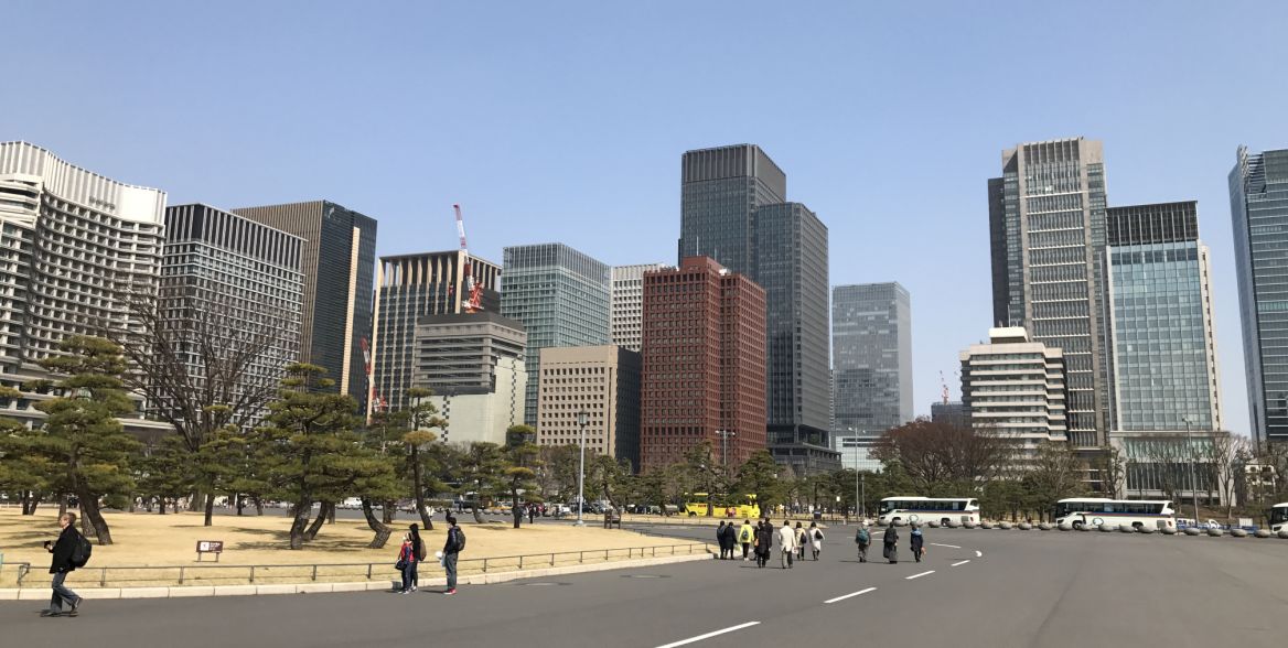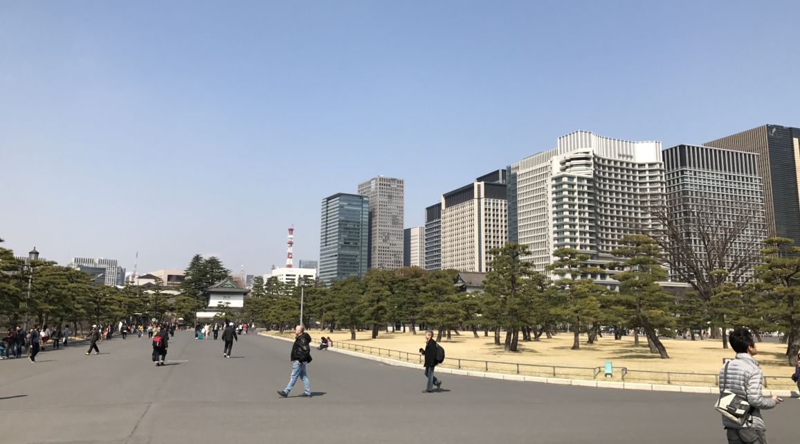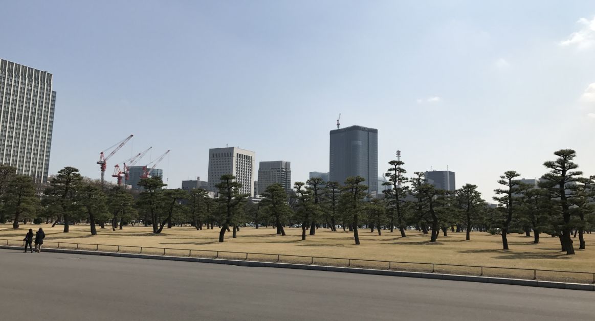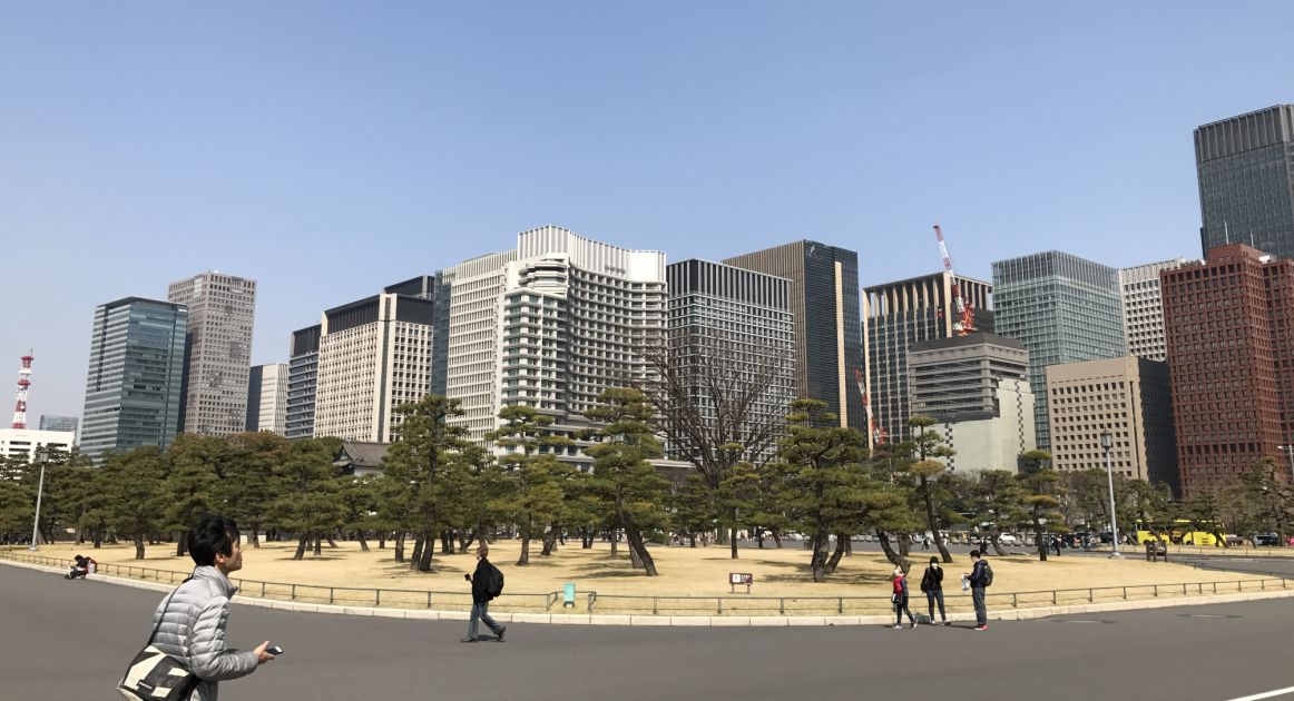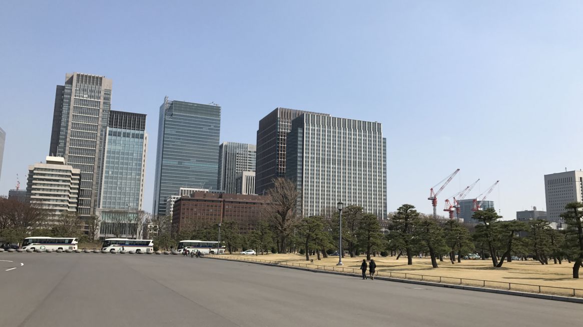 The Imperial Palace grounds are located in the heart of the city and therefore surrounded by skyscrapers.