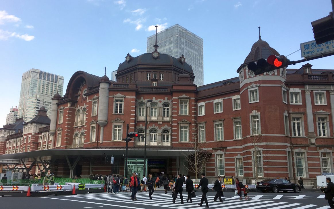 The main station façade of Tokyo station on the western side of the station is brick-built, surviving from the time when the station opened in 1914.