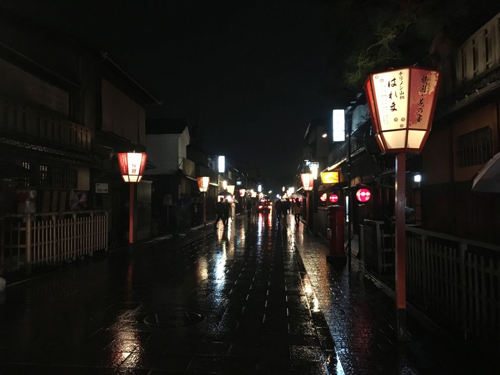 Hanamikōjidōri, the main street that passes through the center of Gion.