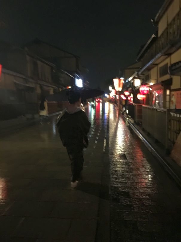 We were lucky enough to see a Geisha walking the paved streets to her next job. Geisha and Maiko entertain guests with traditional music, dance and conversation.