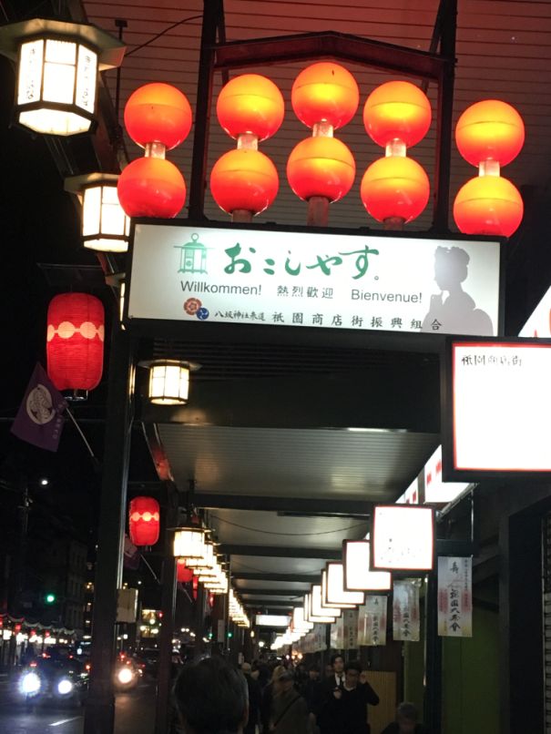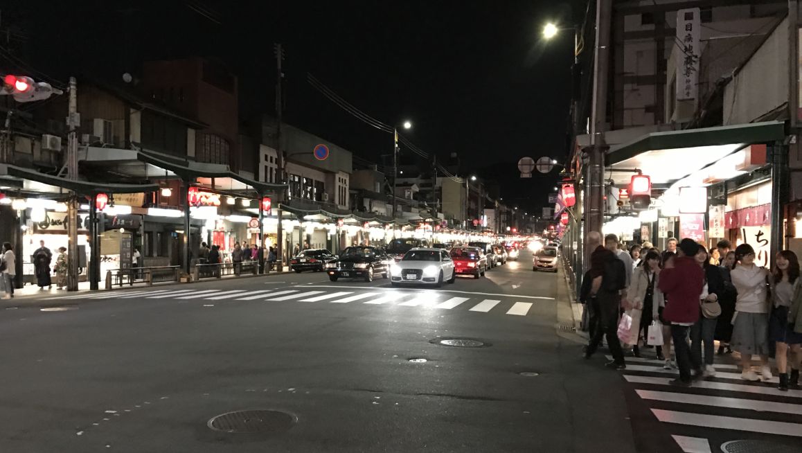 Shijo-dori street is a busy street that runs in the center of Kyoto from east to west through the commercial center of the city.